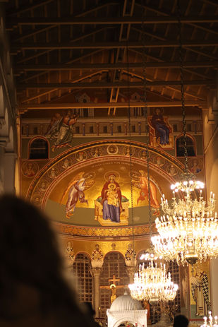 Наша подорож розпочалася у величній базиліці Святого Димитрія — одному з найдавніших храмів Салонік. Перші святині на цьому місці з’явилися ще у IV столітті, невдовзі після мученицької смерті святого. Підземна крипта зберігає пам’ять про місце, де Димитрій постраждав за Христа. У стінах храму відчувається подих історії, а миро, яке чудесно витікало від мощей, зробило його всесвітньо відомим.
